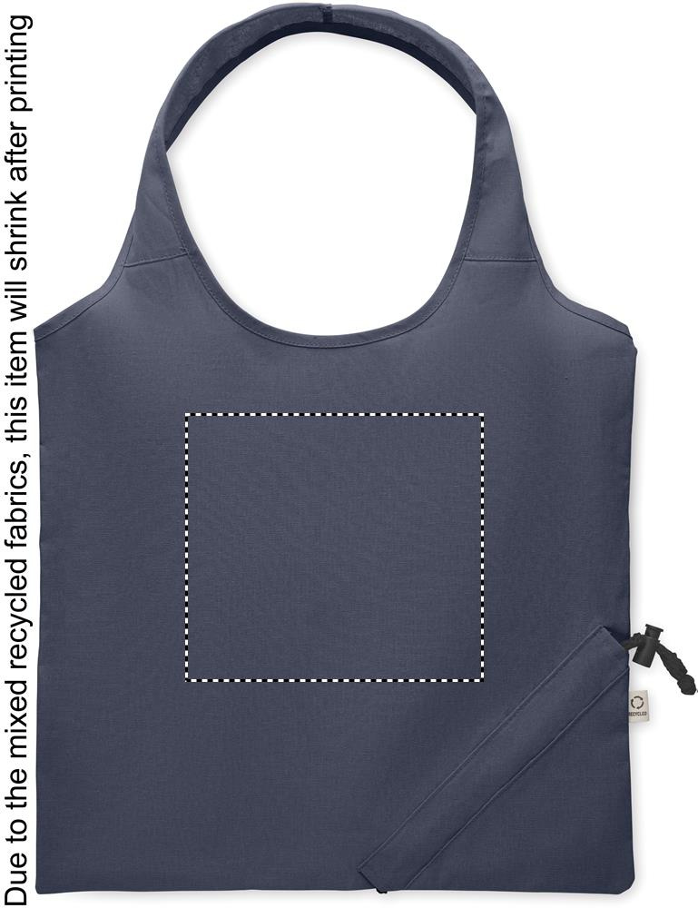 Must tarbimiseelsest taaskasutatud puuvillast kokkupandav ostukott (70% taaskasutatud puuvill ja 30% RPET). 140 gr/m².