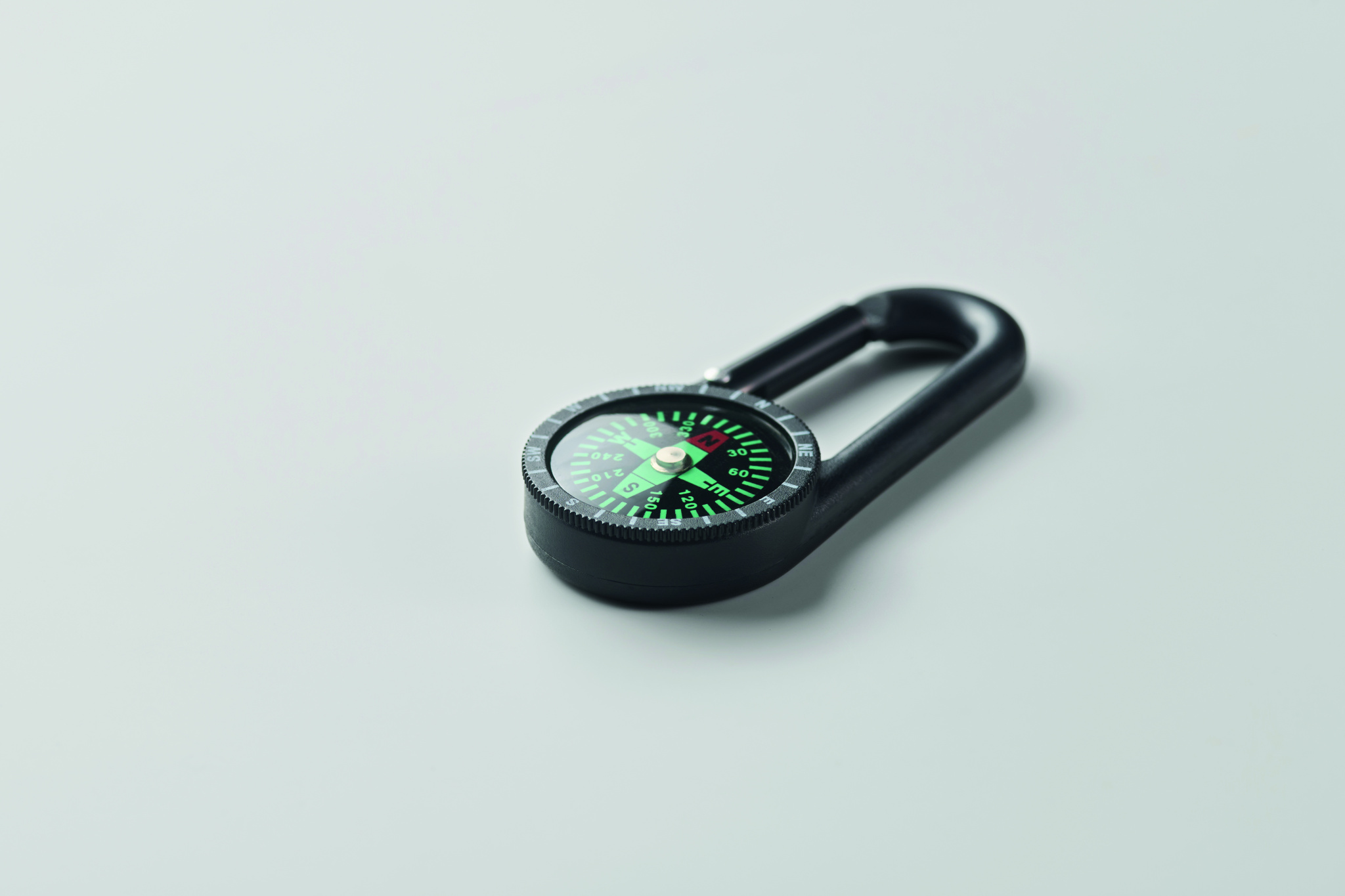 ABS-plastist õuekompass karabiiniga. Karabiin ei ole mõeldud ronimiseks (mitteprofessionaalseks kasutamiseks).