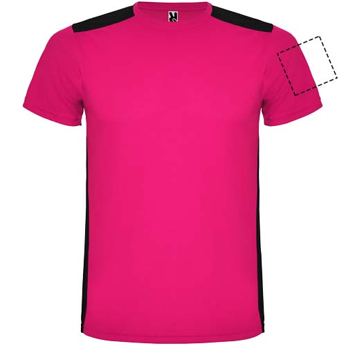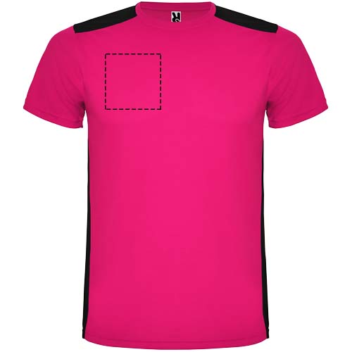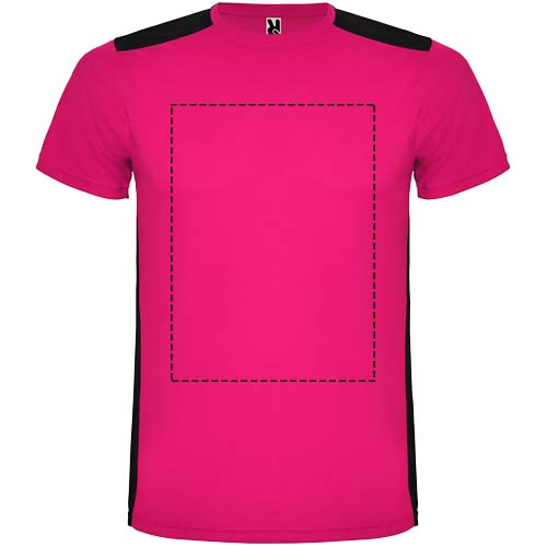 Kergesti kuivav, tehniline ja hingav kangas. Meeskonna kael. Kahe polüesterkanga kombinatsioon seljal ja õlgadel. Ees linnusilma kangas ja taga hingav 3D võrkkangas. Niiskuse imamiseks ettevalmistatud kangas. Dekoratiivne siksakiline seljapiste külgedel ja õlgadel. Seljamuster veidi pikem. Eemaldatav etikett.