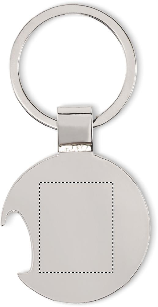 Tsingisulamist valmistatud jalgpallikujulise pudeliavaja võtmehoidja rauast rõngaga.