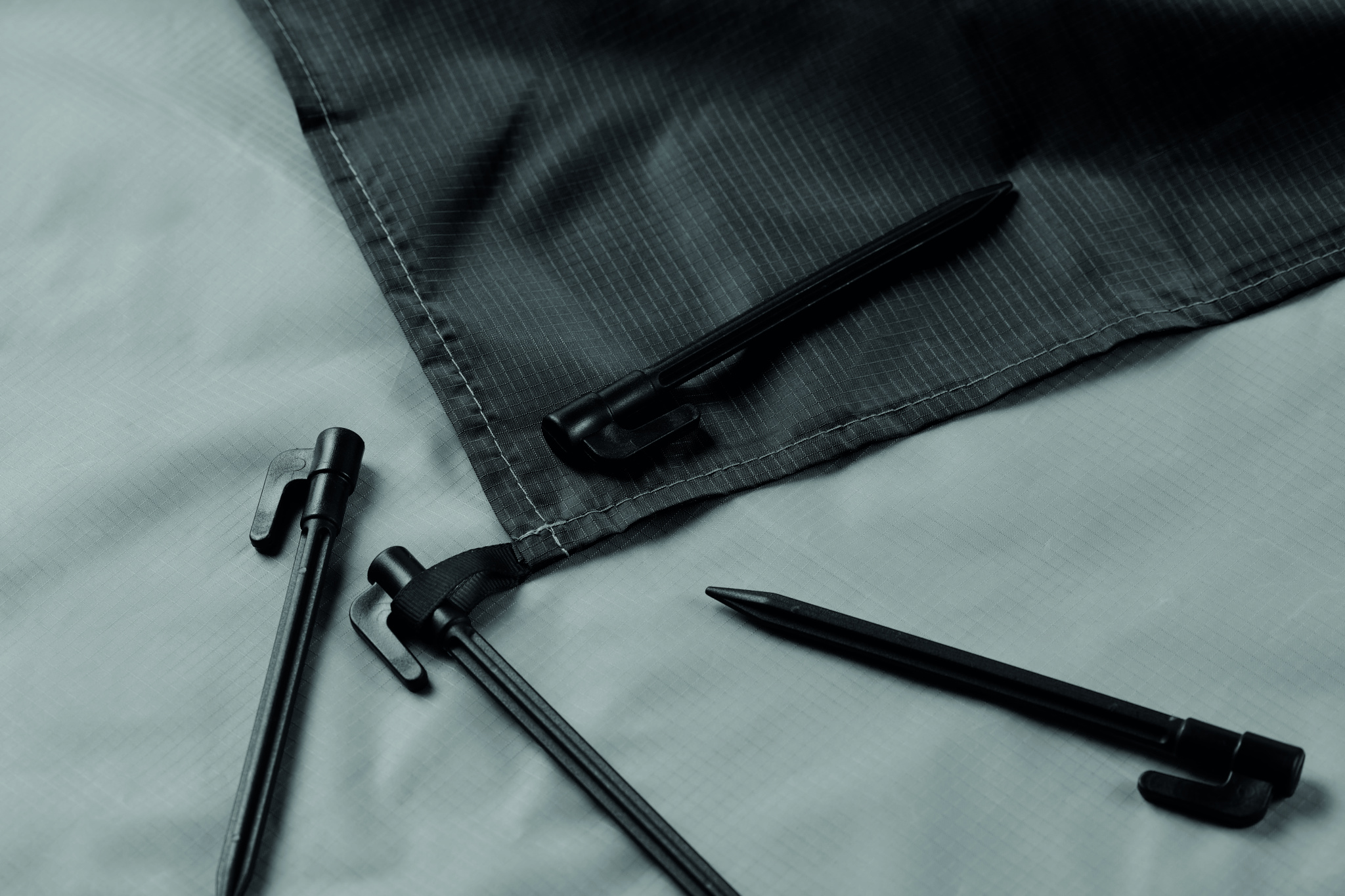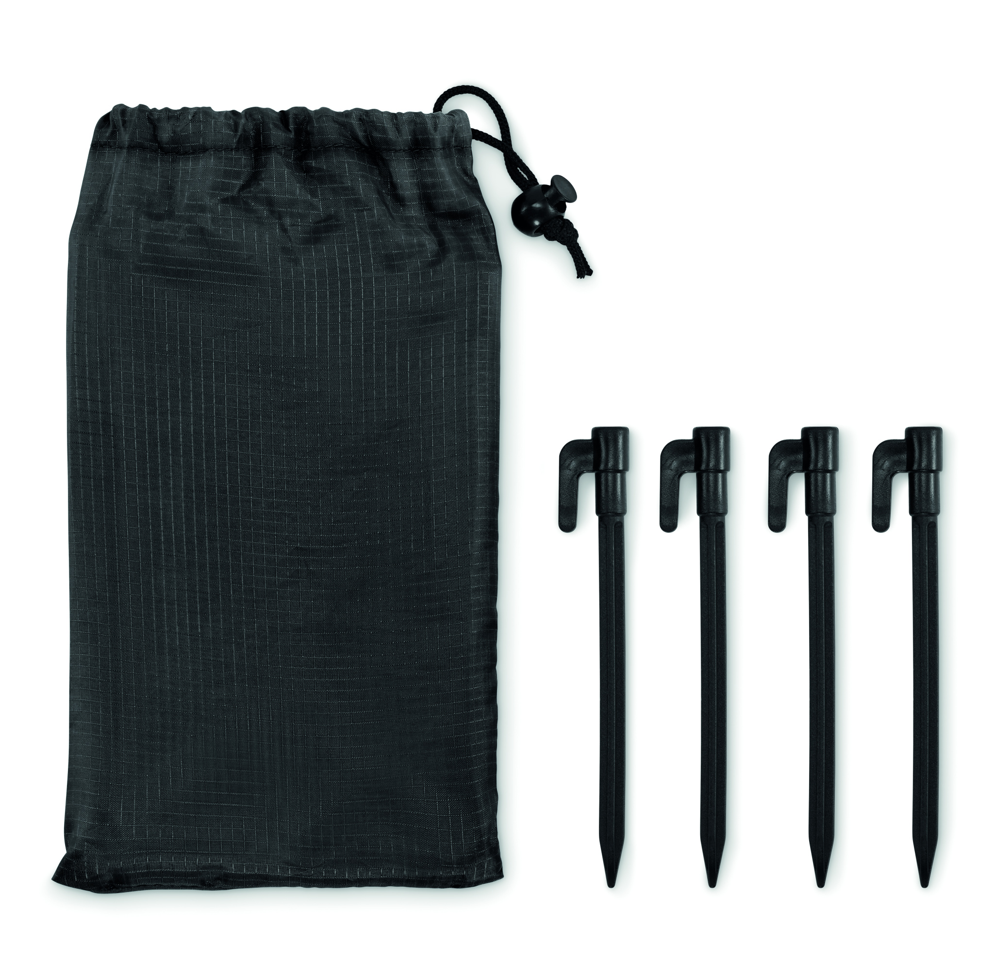 Kerge 210T polüestrist rannamatt, mõõtmetega 200x210 cm. Komplektis 4 musta konksu ja sobiv pingutusnööriga tasku mugavaks kaasaskandmiseks.