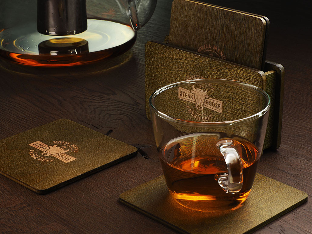 Logotrade reklaamtoote foto: Puidust karp koos 4 tassialusega 1871121