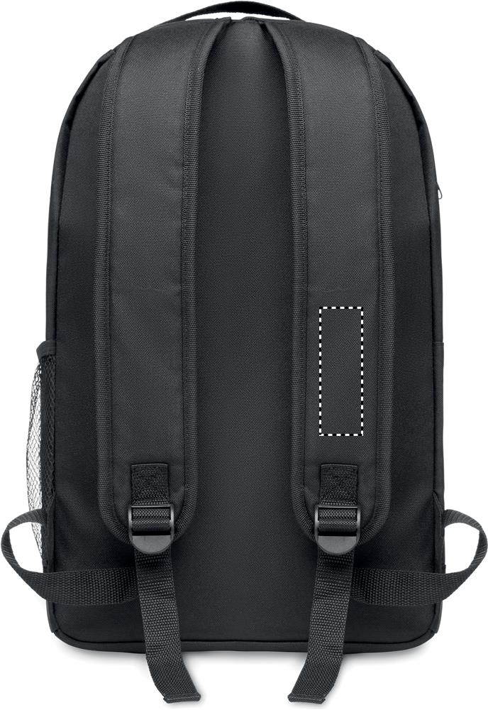 600D RPET-ist seljakott, mille esipaneelil on eemaldatav COB-valgusti. Valge COB-valgusti 3 erineva valguse heleduse seadistusega. Haagi ja aasaga suletav esitasku. Küljel võrktasku. Komplektis nööpatarei.