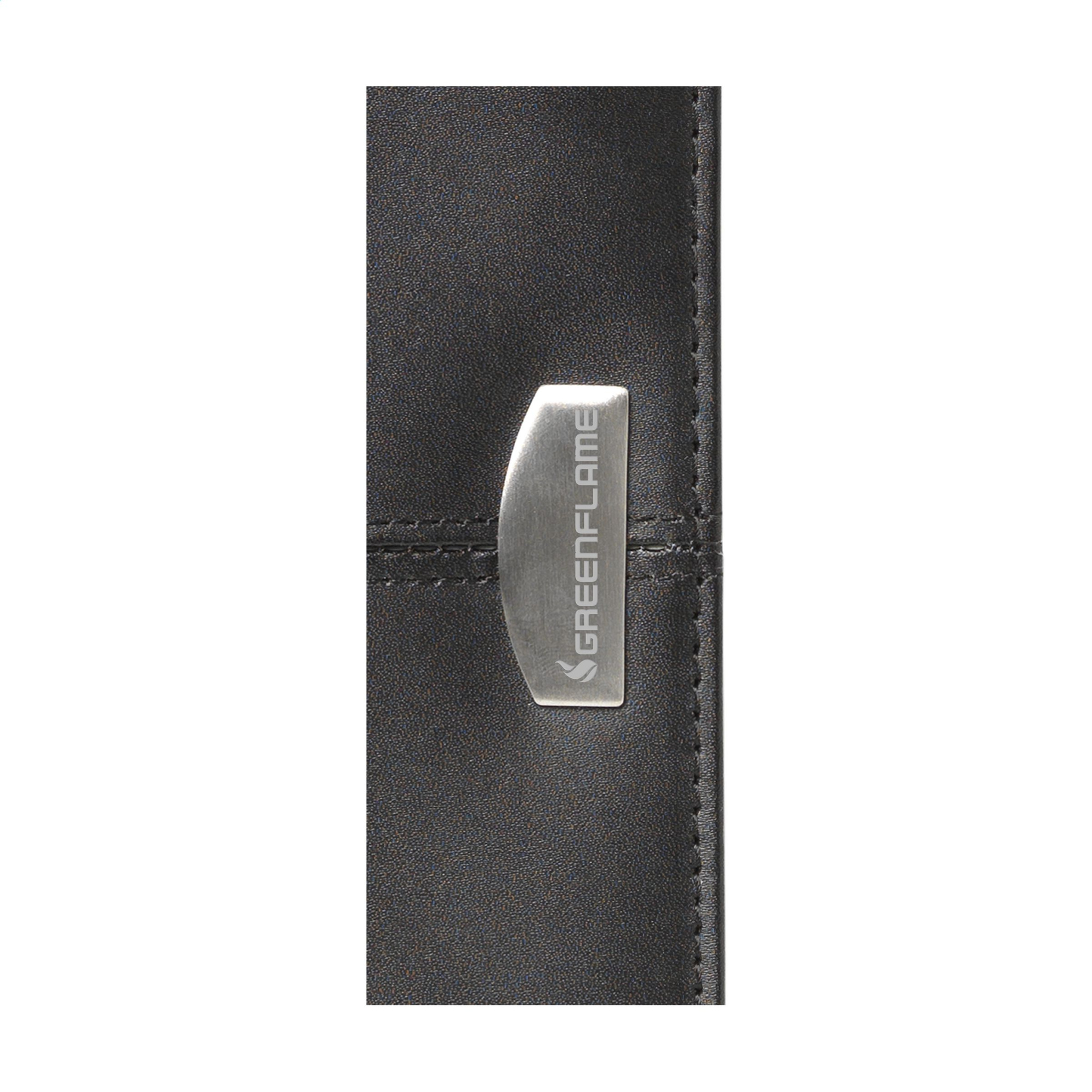 Konverentsi/dokumentide kaust valmistatud peenest liimitud nahast, A5 formaadis. Erinevate taskute ja tõmblukuga. Sealhulgas kirjutusplokk ja pastapliiats. Iga ese on eraldi karbis.