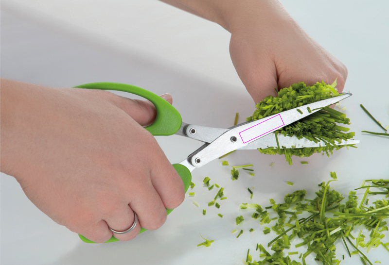 Nende suurepäraste roostevabast terasest ürdikääridega saate edaspidi ürte lõigata viis korda kiiremini. Kanname teie logo kaitsekaanele tamprüki abil.