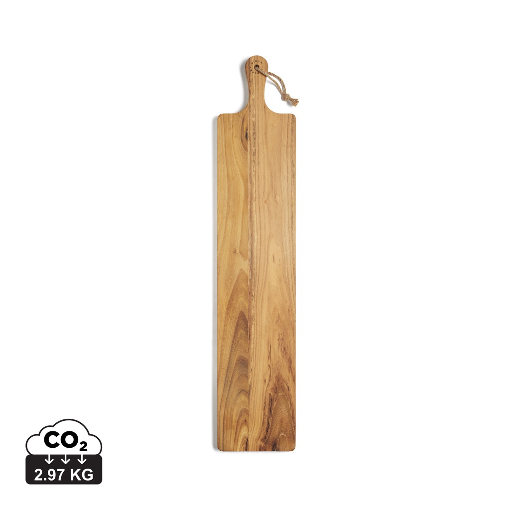 Tugev ja väga mugav lõike-/serveerimislaud, mis tänu oma 75 cm pikkusele ja 15 cm laiusele on piisavalt suure pinnaga, et seda saaks kasutada nii lõikamiseks kui serveerimiseks. Plaat on valmistatud FSC® sertifikaadiga tiikpuust ja sellel on ilus kuldne kuni keskpruun puitpind, mis aja jooksul tumeneb. Kõrge õlisisaldus annab plaadile võimsa kaitse lagunemise eest ja hoiab seda pikka aega heas seisukorras.