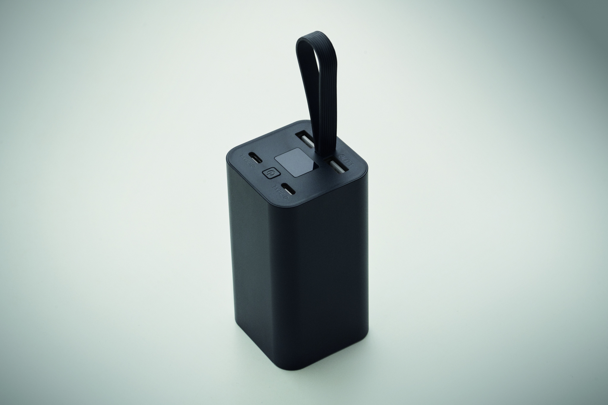 20 000 mAh akupank taaskasutatud alumiiniumist, digitaalse toitenäidiku ja silikoonist riputuskohaga. Kahe Type-C ja kahe USB-A väljundiga ning PD 65W kiirlaadimisega.