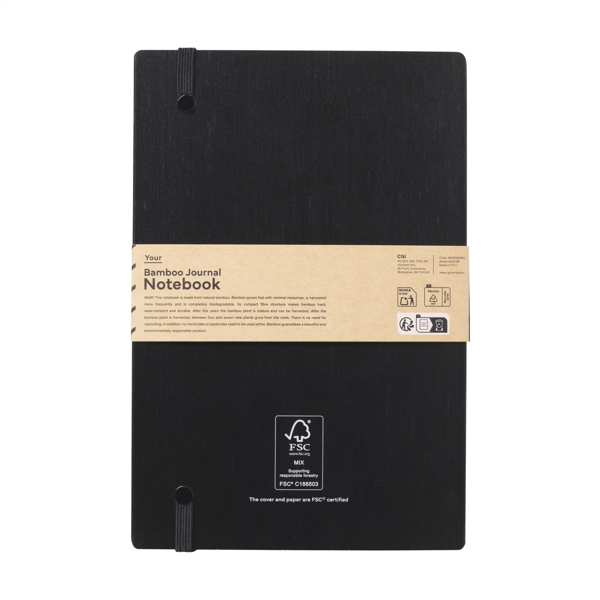 Logo trade mainoslahja ja liikelahja tuotekuva: Bamboo Journal Naked Spine Paper Notebook Musta A5