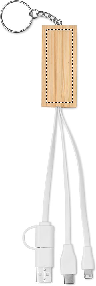 Bambuinen avaimenperä ja puhelinteline -toiminto latauskaapelilla. Tulo: 2-in-1 Type-C & Type-A. Lähtö: Type-C ja micro-B (2 in 1 pin).