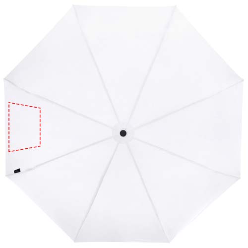 Kokoontaitettava sateenvarjo, jonka kupu on pongee-polyesteri PET-kierrätysmuovista. Tukeva metallivarsi ja laadukas runko lasikuitutuilla joustavat tuulessa. Mukana tuleva pussi kulkee mukavasti käsilaukussa tai repussa. Puinen kahva ja PET-kierrätysmuovista valmistettu pongee-polyesterikupu tekevät tästä ympäristöystävällisen vaihtoehdon. Laaja valikoima nykyaikaisia värejä ja suuri logomerkintä jokaisessa paneelissa.