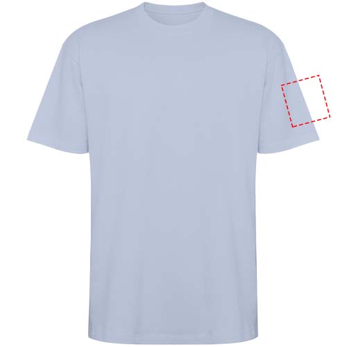Ylikokoinen lyhythihainen t-paita. Pyöreä kaulus, jossa on 2x1-joustoneule ja yhteensopivat saumanpäälliset. Sivusaumat. Leveät kaksoisompeleet hihoissa ja helmassa. Irrotettava etiketti.