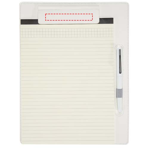 Clast kirjoitusalustassa yhdistyvät tyylikäs PU-nahkainen muotoilu sekä käytännölliset ominaisuudet, ja se sopii sekä kokouksiin että jokapäiväiseen käyttöön. Se sopii tavallisille A4-sivuille ja siinä on magneettiklipsi, ommellut reunat ja sisäänrakennettu kynälenkki. Sisällä on 26 viivoitettua arkkia 65 g/m²:n paperia sekä kuulakärkikynä, jonka yläosa on kierrätettyä muovia ja alaosa RCS-sertifioitua kierrätettyä alumiinia. Juana-kuulakärkikynä on saatavilla myös erikseen. Kirjoitusalustan koko: 25,5 × 33 cm. Kynän musteen väri: musta.