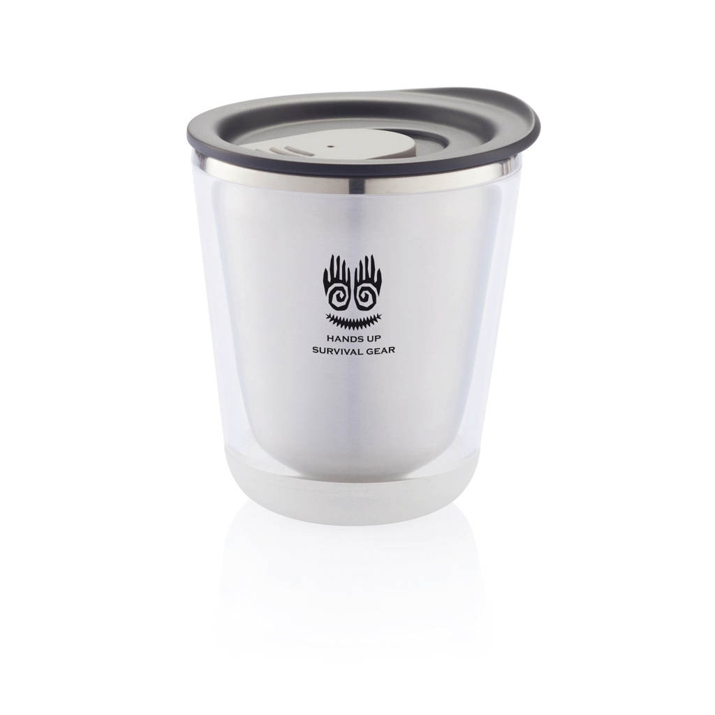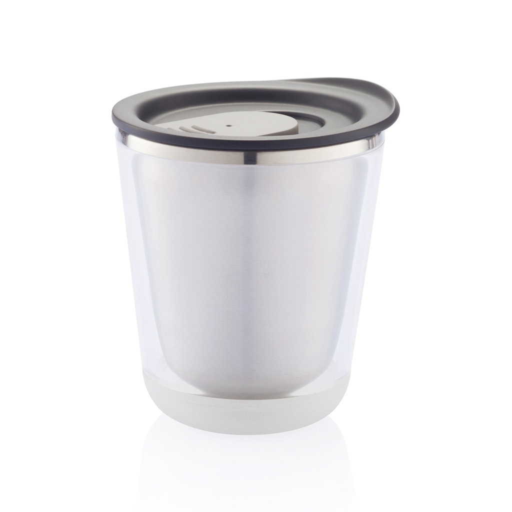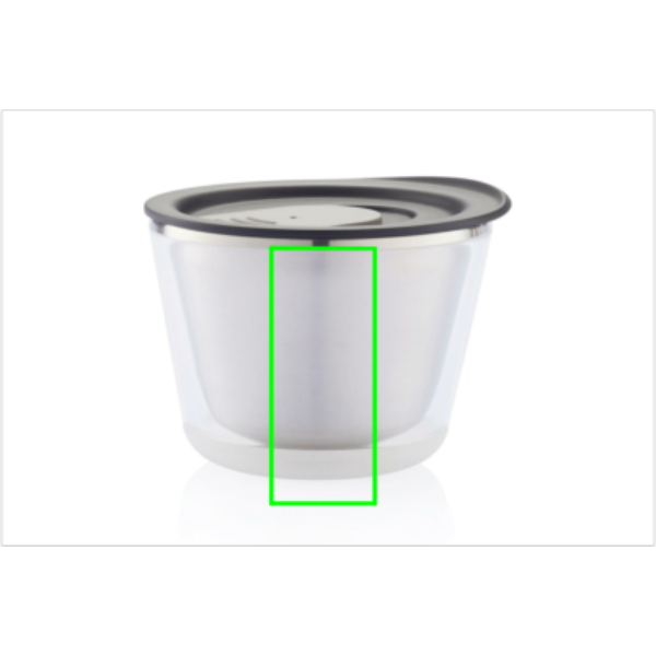 Suljettava, eristetty ja riittävän kompakti sopimaan kahvinkeittimen alle (227 ml). Myös erittäin hygieeninen, sillä kaatimen sisäpinta on tehty ruostumattomasta teräksestä, ei muovista. Suunniteltu niin, että muki on helppo purkaa kierrätystä varten. Rekisteröity design®.