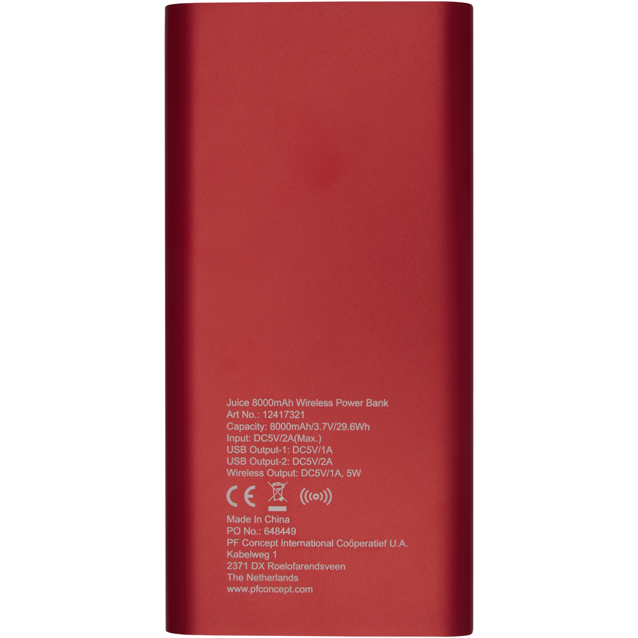 8000 mAh:n varavirtalähde alumiinikuorella. Tukee langatonta 5 W:n latausta, ja mukana tulee myös kaapelilla lataamisen mahdollistava Micro-USB-lähtö. Laturin 8000 mAh:n litiumpolymeriakku riittää älypuhelimen lataamiseen täyteen lataukseen useita kertoja. Virran merkkivalo näyttää lataustason jatkuvasti. Micro-USB-portti: 5 V/2 A ulostulo: 5 V / 2 A. Langaton 5 W:n lähtö. Mukana PVC-vapaa TPE-muovista valmistettu latauskaapeli. Toimitetaan lahjapakkauksessa.