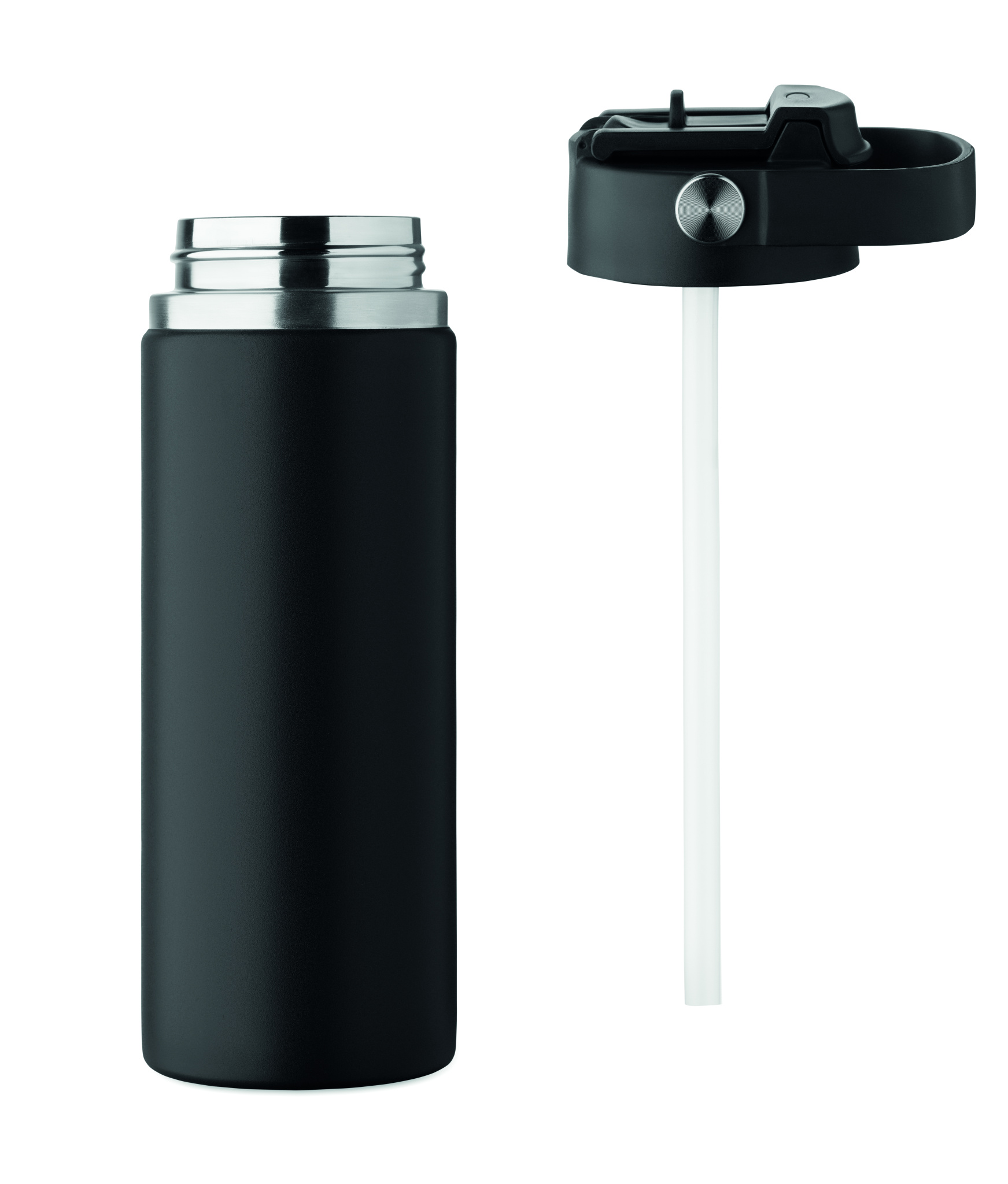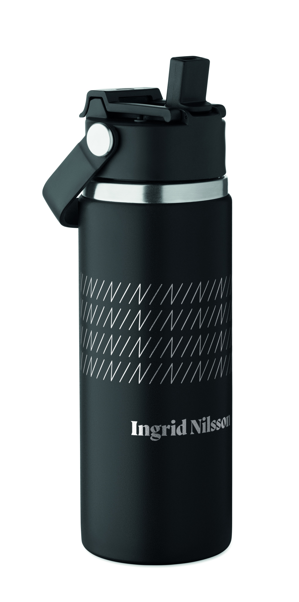 Kaksiseinäinen eristetty juomapullo, 90 % kierrätettyä ja 10 % ruostumatonta terästä. Yhdistelmäkansi pillillä ja juomareijällä, kahva, vuotamaton. Tilavuus 500 ml.