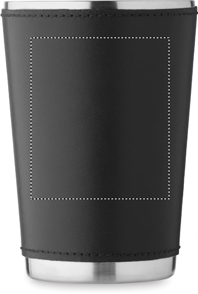Kaksiseinämäinen juomalasi kierrätettyä ruostumatonta terästä (90 % kierrätettyä ruostumatonta terästä ja 10 % ruostumatonta terästä) irrotettavalla PU-nahkaholkilla. Kansi liukuvalla sip-reiällä. Vuotamaton. Tilavuus: 350 ml.