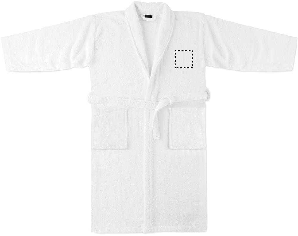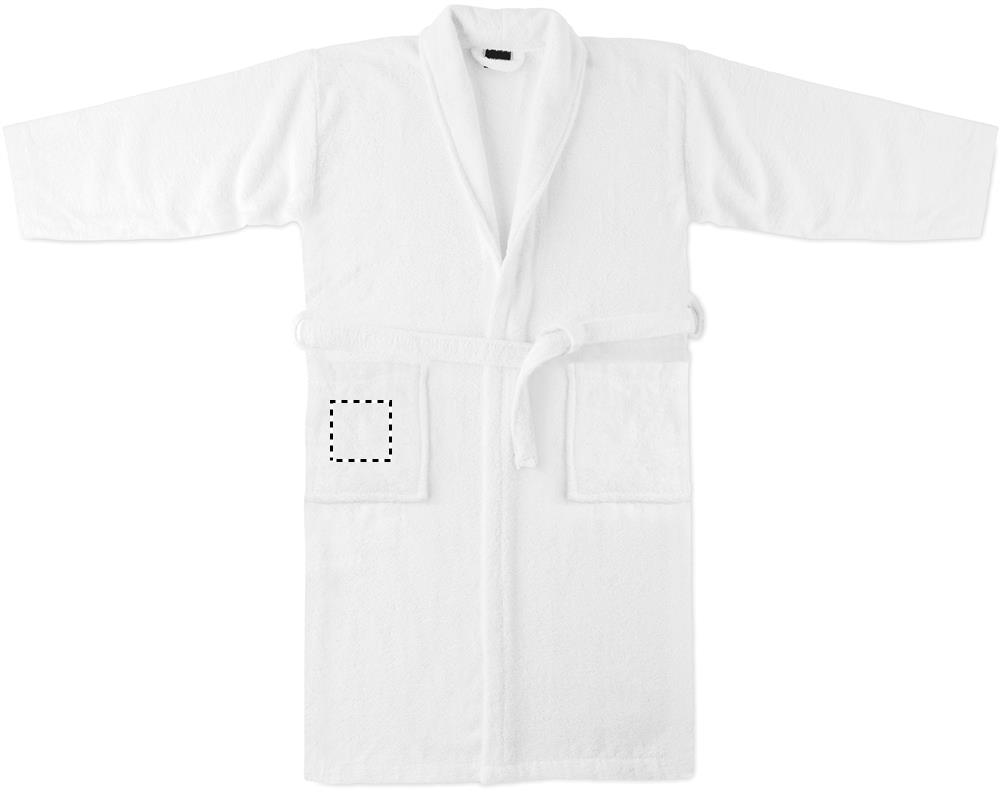 350gr/m² orgaanisesta puuvillasta valmistettu kylpypyyhe, etutaskuilla. Koko XL/XXL, sisältää orgaanisen puuvilla säilytyspussin.