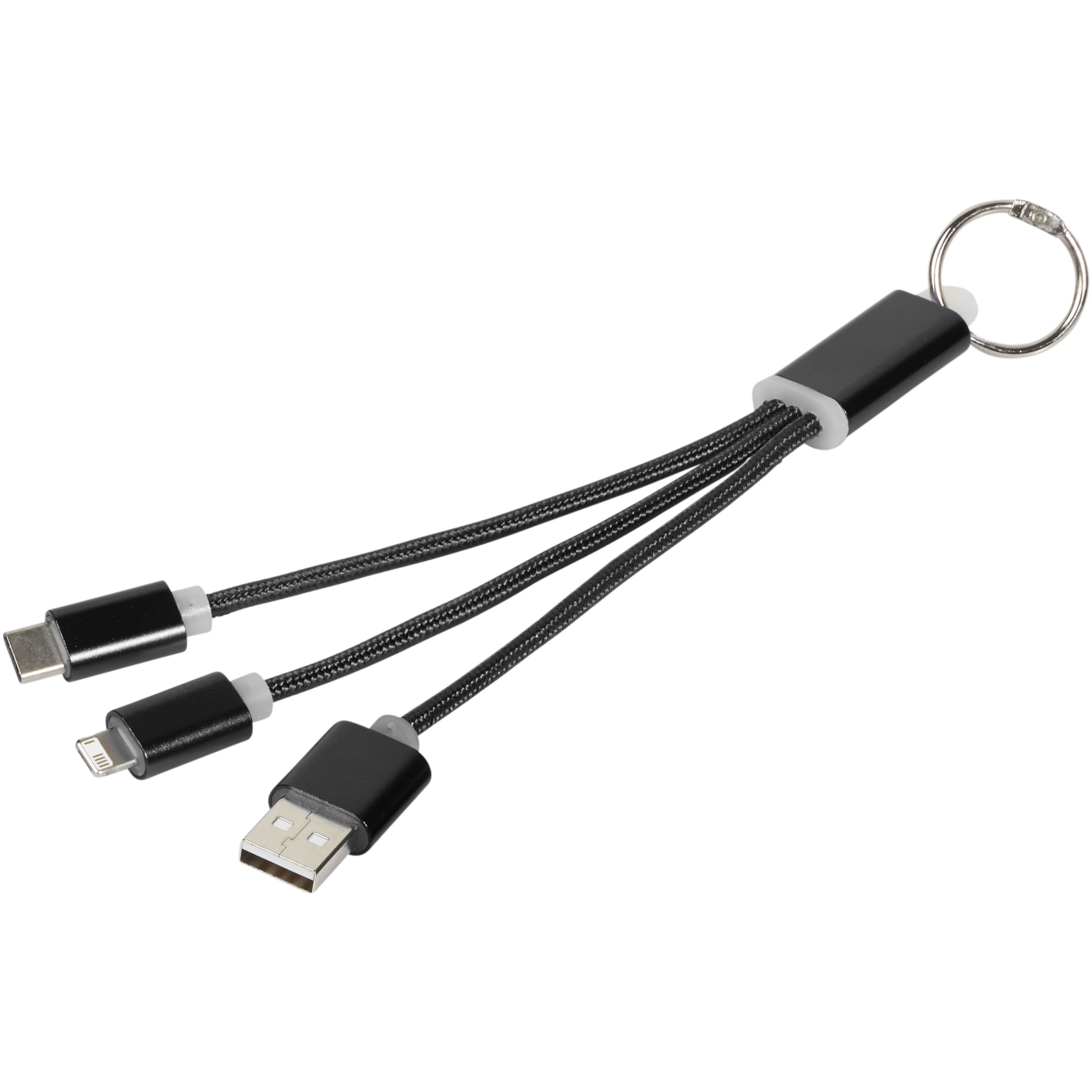 Metal 3-in-1 -latauskaapeli avainketjulla, Tasainen musta