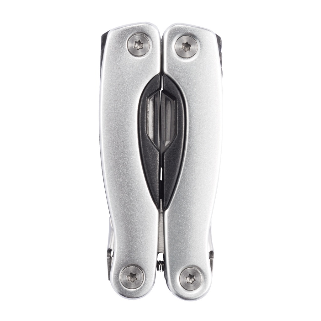 13 toimintoa, monitoimityökalu ruostumattomasta teräksestä, anodisoitu alumiinikahva. Sisältää mustan säilytyspussin.