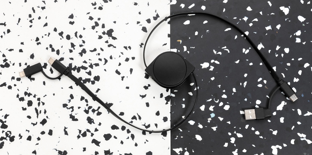 6-in-1 sisäänvedettävä kaapeli valmistettu RCS sertifioidusta ABS muovista, ja johto kierrätetystä TPE:stä. RCS (Recycled Claim Standard) on standardi, jolla varmennetaan tuotteen kierrätetty materiaali koko toimitusketjun ajan. RCS-standardia käytetään, kun osa tuotteesta on valmistettu kierrätetystä materiaalista. 5 eri yhdistintä: USB C sisääntulo, USB-A sisääntulo, tyypin C ulostulo, ja mikro USB ulostulo. Näin voit käyttää tuotetta myös uudemman sukupolven laitteden, jotka hyödyntävät tyypin C ulostuloa, kanssa. Kaapelissa on USB A ulostulo/sisääntulo mahdollisuus, joten se voi ladata mitä tahansa laitetta mistä tahansa virtalähteestä. Tuote on PVC vapaa.