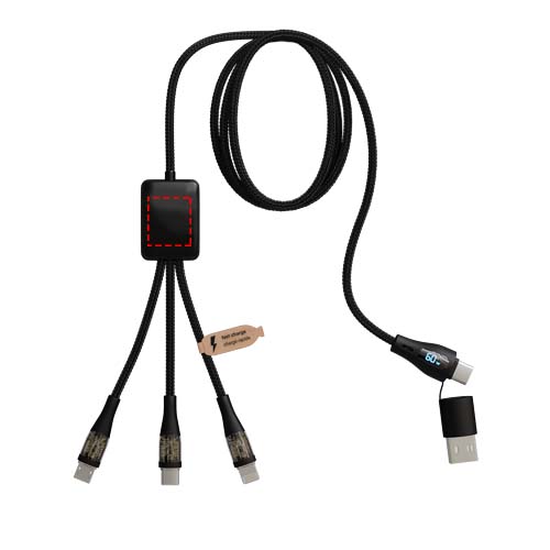 Logo trade mainostuotet tuotekuva: SCX.design C51 näytöllä varustettu 5-in-1-pikalatauskaapeli rPET-muovista, 60 W
