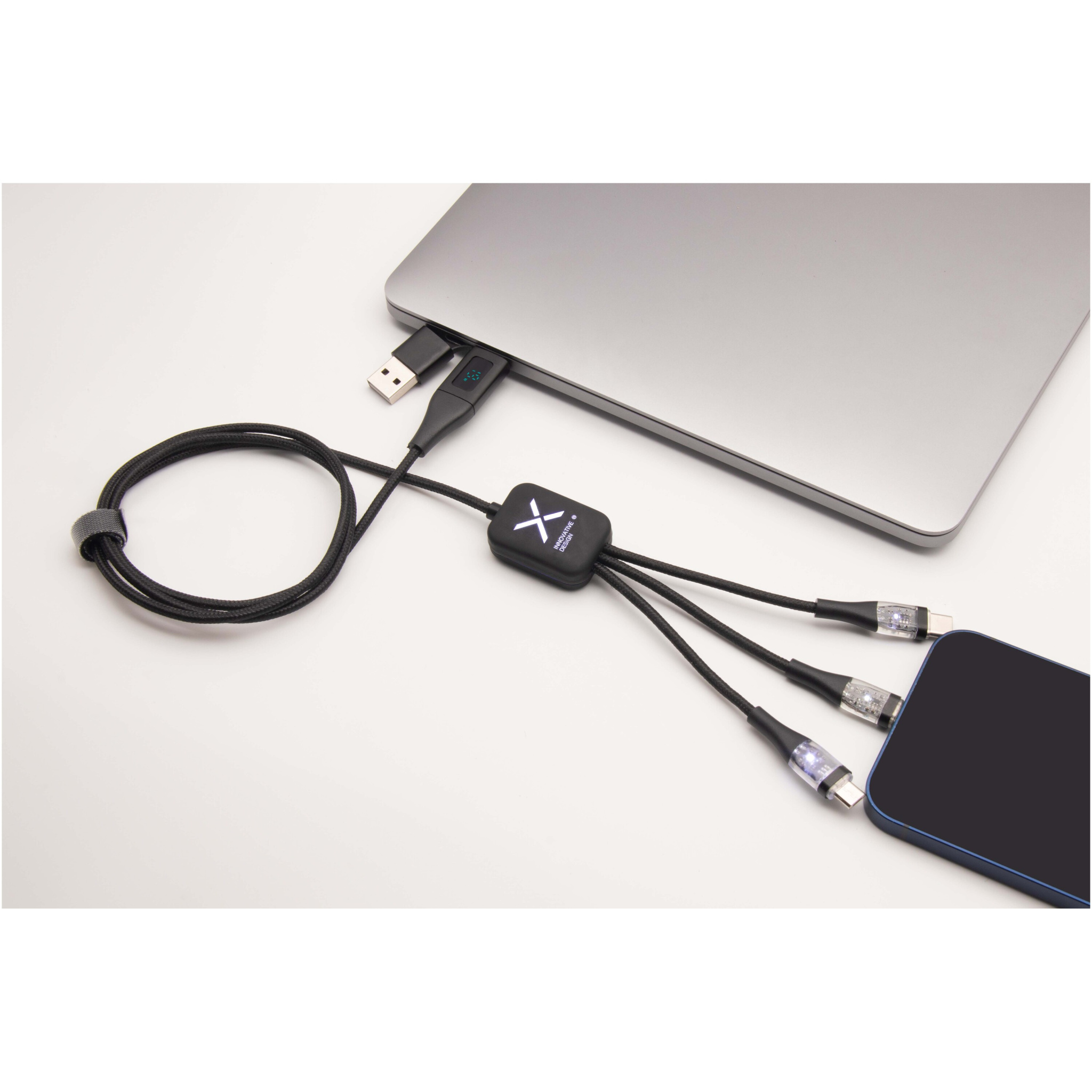 Logo trade mainoslahjat ja liikelahjat kuva: SCX.design C51 näytöllä varustettu 5-in-1-pikalatauskaapeli rPET-muovista, 60 W