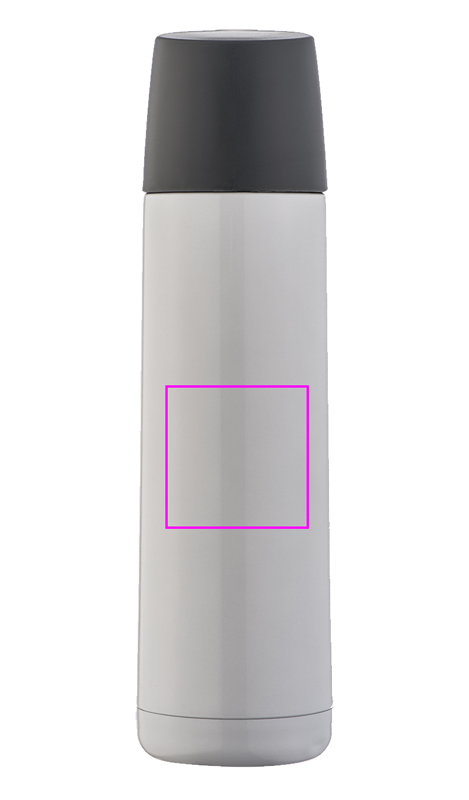 Ruostumattomasta teräksestä valmistettu tyhjiöpullo (500 ml) täydellisellä juomamukilla. Logosi laserkaiverretaan pulloon.