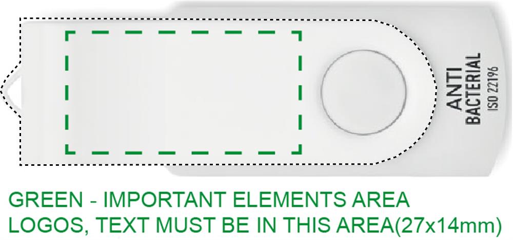 16GT antibakteerinen muistitikku metallisella suojuksella. Ottaaksesi muistitikun käyttöön kierrä suojakansi pois USB 2.0 portin päältä ja yhdistä vastaanottavaan USB porttiin. ISO22196.