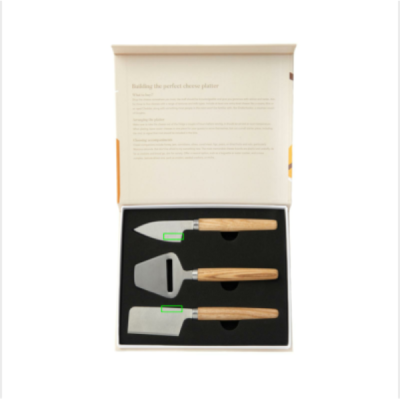 Täydellinen lahja juuston ystäville. Täydellinen kolmen juustoveitsen setti kaikenlaisten kovien ja pehmeiden juustojen leikkaamiseen, viipaloimiseen, tarjoilemiseen ja levittämiseen. Tämän setin tyylikkäissä juustoveitsissä on saarnipuukahvat ja ruostumattomasta teräksestä valmistetut terät tuomassa tyylikkyyttä illallisen jälkeen esiin nostettavalle juustotarjottimelle.