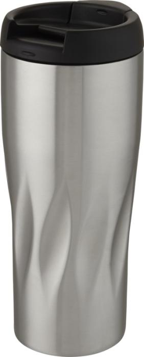 Kaksiseinäinen kuparityhjiöeristetty muki, jossa on aaltogeometrisesti kuvioitu kierrettävä tiivis kansi. Eristetty 18/8 ruostumaton teräs pitää juoman kuumana tai kylmänä useita tunteja. BPA-vapaa, testattu ja hyväksytty Saksan elintarviketurvallisuuslainsäädännön (LFGB) mukaisesti, sekä ftalaattipitoisuus testattu REACH-asetusten mukaisesti. Tilavuus on 450 ml. Suositellaan pestäväksi käsin. Toimitetaan kierrätetystä kartongista valmistetussa lahjapakkauksessa.