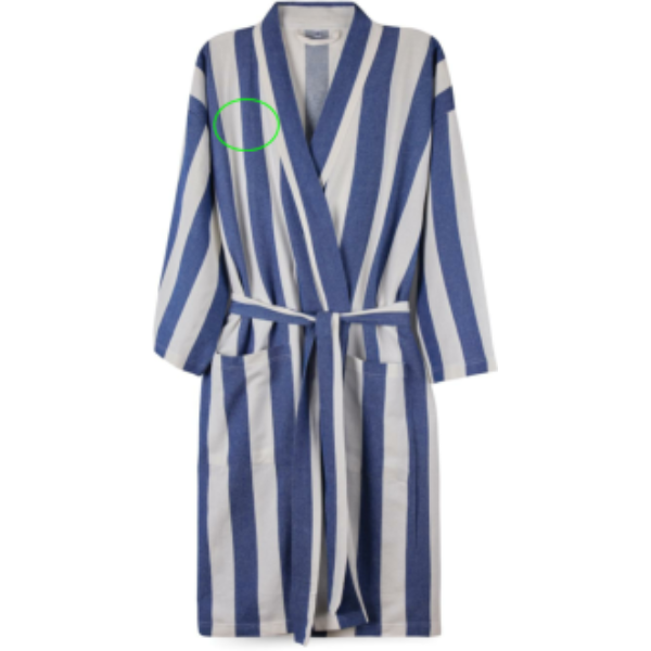Atsineškite šį minkštą ir patogų hamamo chalatą į paplūdimį arba tiesiog mėgaukitės juo namuose. Pagaminta iš lengvo ir erdvaus 200 gsm mišinio, medvilnės patogumas derinamas su greitai džiūstančiomis poliesterio privalumais. Sukurtas klasikinio stiliaus su dviejų atspalvių dryžuotu raštu, tvarkinga apykakle, priekinėmis kišenėmis, 3/4 rankovėmis ir juosmens diržu, kad puikiai priglustų. Sertifikuotas GRS (Global Recycled Standard), GRS sertifikatas garantuoja, kad visa perdirbtų medžiagų tiekimo grandinė yra sertifikuota. Bendras perdirbto produkto kiekis priklauso nuo bendro produkto svorio. Šiame gaminyje yra 69 % GRS sertifikuoto perdirbtos medvilnės ir 29 % GRS sertifikuoto perdirbto poliesterio.
