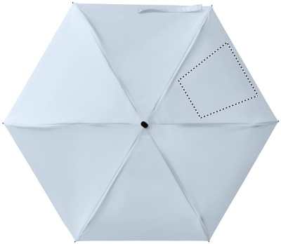 19 collu 5 salokāms manuāls lietussargs, kas izgatavots no 190T pongee auduma, ar atbilstošu maisiņu. Tam ir metāla un stiklšķiedras vēja necaurlaidīgs rāmis, melns gumijots rokturis ar plaukstas siksnu un kompakts 17 cm garums salocītā veidā.