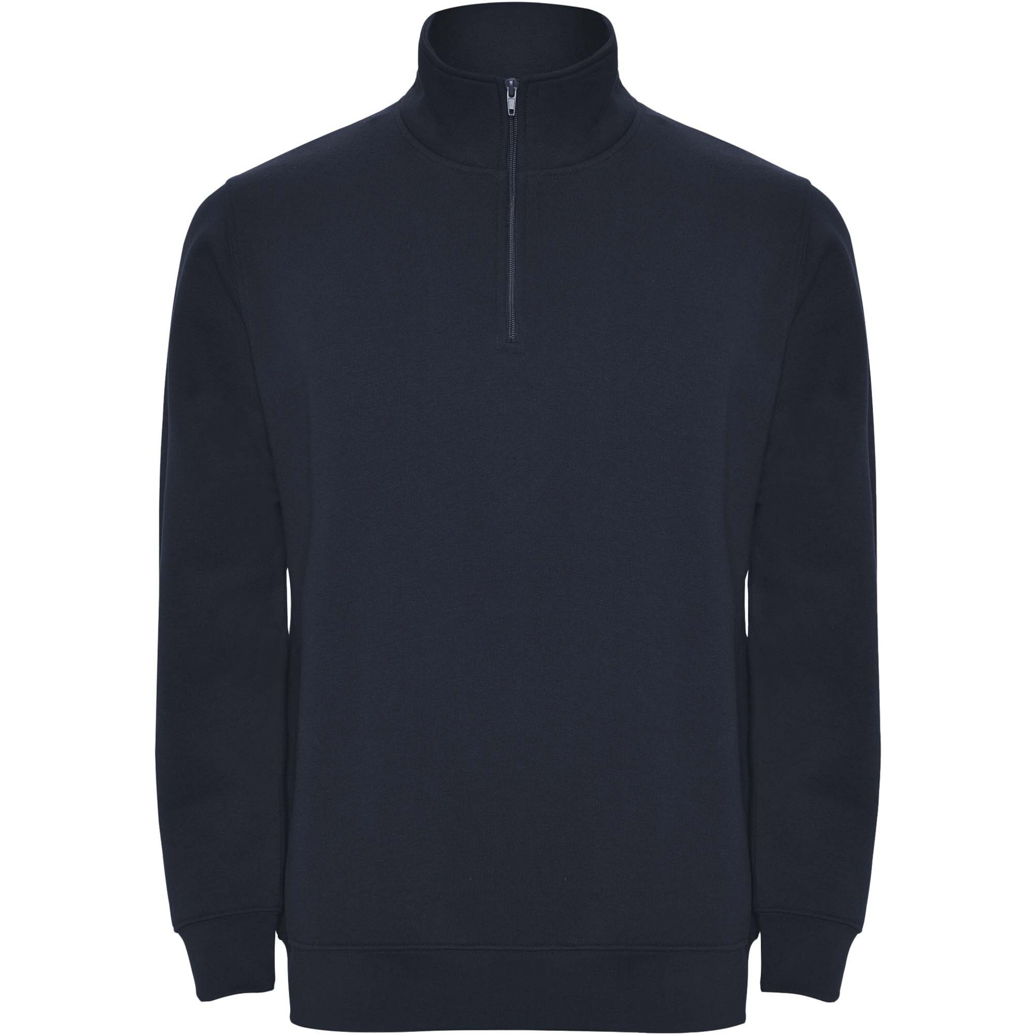 Džemperis ar pieskaņotu pusi rāvējslēdzēju un polo kakla izgriezumu. Atbilstoša iekšējā apkakle. Pastiprinātas pārklātas šuves uz iekšējās apkakles. 1x1 rievotas aproces un viduklis. Modelis ir 185 cm garš un valkā M izmēru.