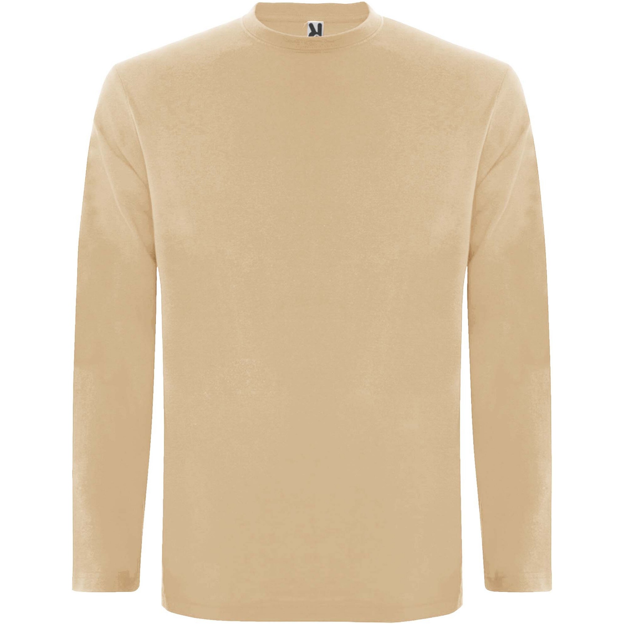 T-krekls ar garām piedurknēm no cauruļveida auduma un 4 slāņu izgriezuma kakla. Pastiprinātas segtas vīles apkaklei un plecos. Nav aproces. Noņemama etiķete. Cauruļveida dizains pieaugušo izmēros un sānu šuves bērnu izmēriem. Modelis ir 185 cm garš un valkā L izmēru.