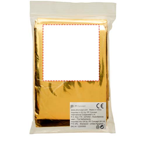 Спасательное одеяло, которое может обеспечить защиту от тепла, холода и влаги. Оно идеально подходит для туристических походов, занятий спортом, а также в чрезвычайных ситуациях. Когда сторона серебристого цвета прилегает к телу, она обеспечивает защиту от холода. Касающаяся тела сторона золотистого цвета будет сохранять прохладу. Размер одеяла — 160x210 см. Одеяло считается медицинским изделием класса I и тестируется и сертифицируется в соответствии с Директивой ЕС «О медицинских изделиях» MDD 93/42/EEC от 14 июня.