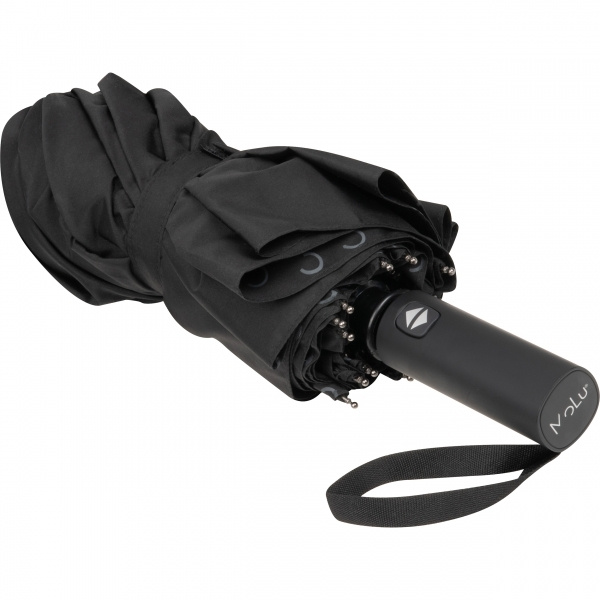 Когда зонт делает больше, чем просто защищает от непогоды. Зонт Molu — это настоящее заявление: он представлен в премиальной круглой коробке, которая с первого взгляда даёт понять: всё дело в качестве. Он оснащён стекловолоконной рамой, выдерживающей ветер скоростью до 180 км/ч. Купол из хлопка плотностью 260 г/м² не только защищает от солнца и не пропускает свет, но и выглядит таким же прочным, как и выглядит. Ручка изготовлена из переработанного АБС-пластика — для тех, кто сочетает стиль с ответственностью. Долговечность, дизайн и функциональность в идеальной гармонии. Ваш логотип точно и профессионально нанесён методом трафаретной печати на одну панель — сдержанный, но эффектный.