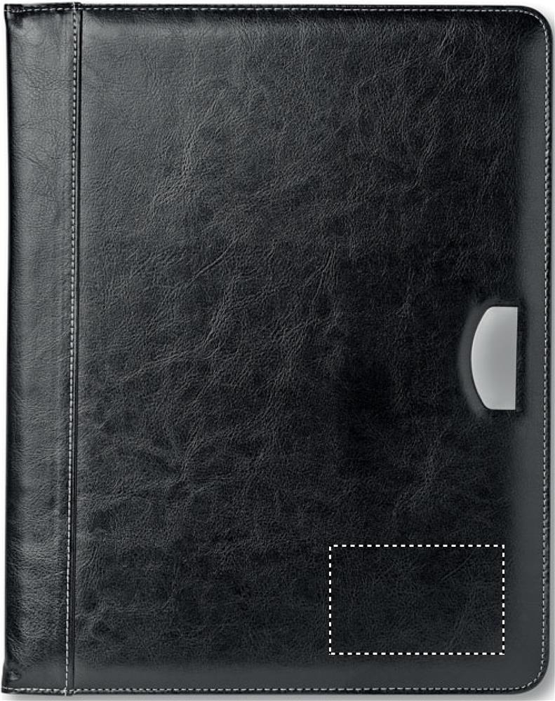 Папка для бумаг формата А4 с металлической пластинкой для логотипа. Включает блокнот на 20 листов
