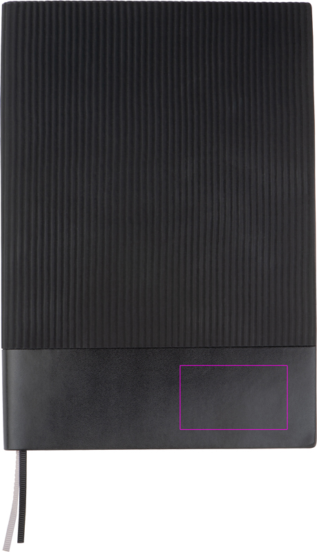 Блокнот формата А5 на 200 страниц в клетку, гибкая мягкая обложка из полиуретана, закладка. Напечатаем ваш логотип на лицевой гладкой поверхности.