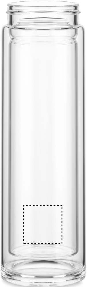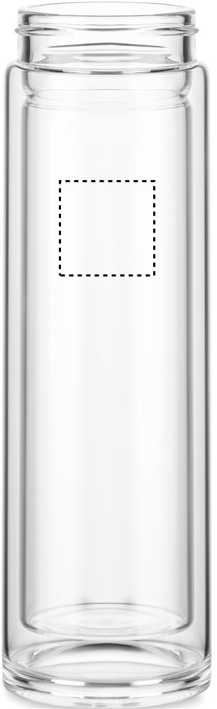 Бутылка с двойными стенками из высокопрочного боросиликатного стекла и насадкой для чая. Бамбуковая крышка имеет металлическую ручку для переноски. Объем: 400 мл.