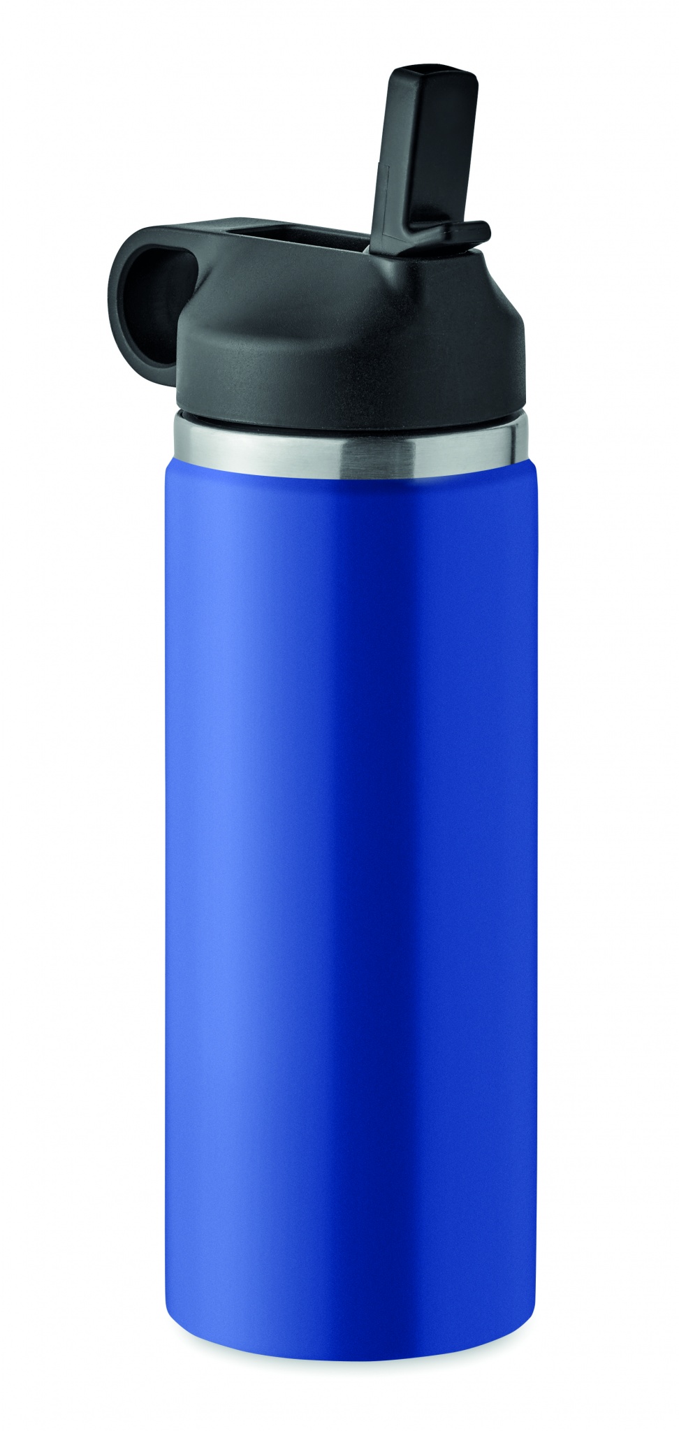 Термобутылка с двойными стенками из переработанной нержавеющей стали 90% и 10% нержавеющей стали с крышкой из полипропилена, ручкой и встроенной соломинкой. Герметична. Емкость: 500 мл.