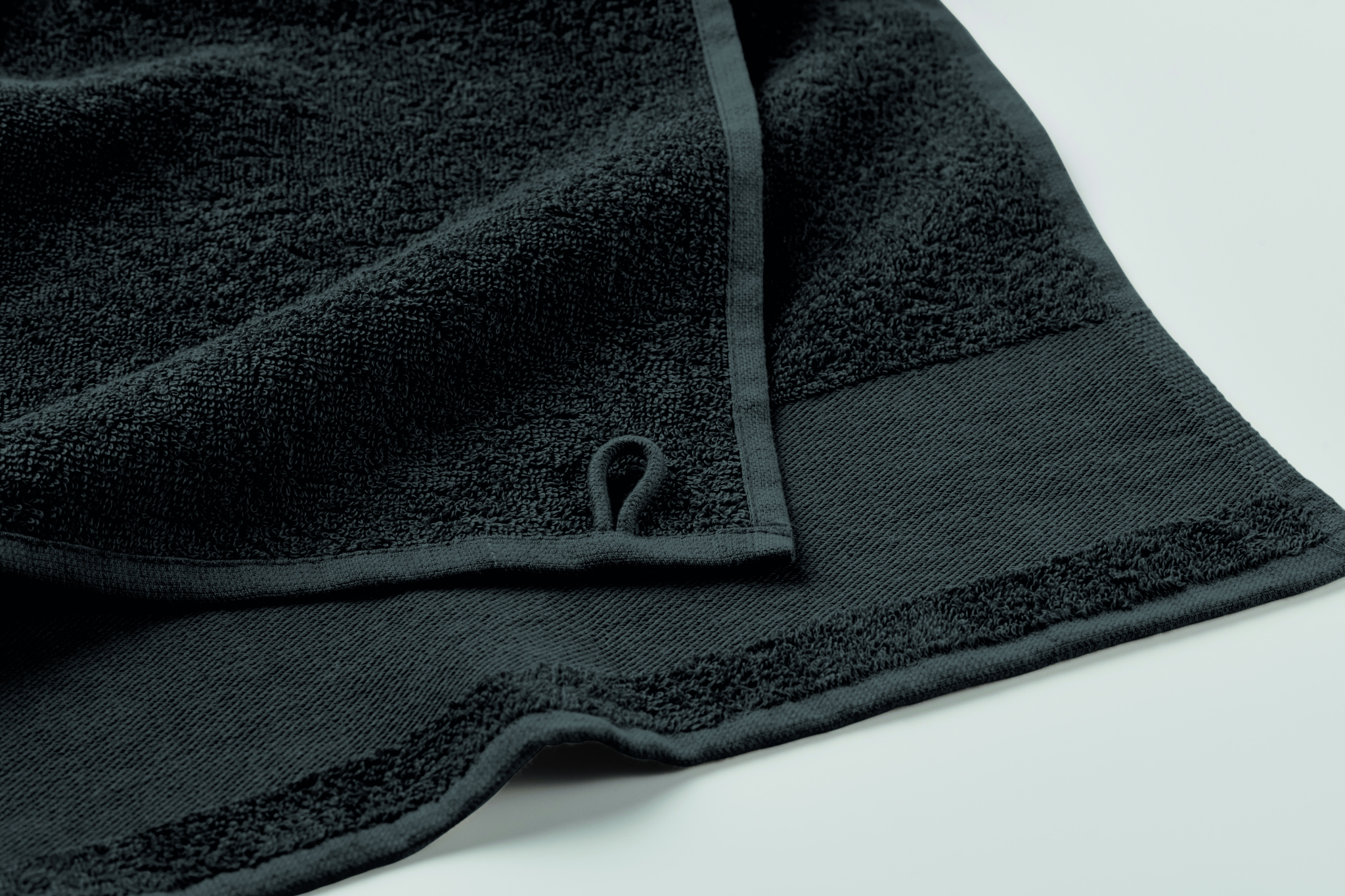 Bath towel made of 100% cotton, 380 gr/m² fabric with cotton hanger loop. Soft and absorbent design. Size 70 cm x 140 cm.