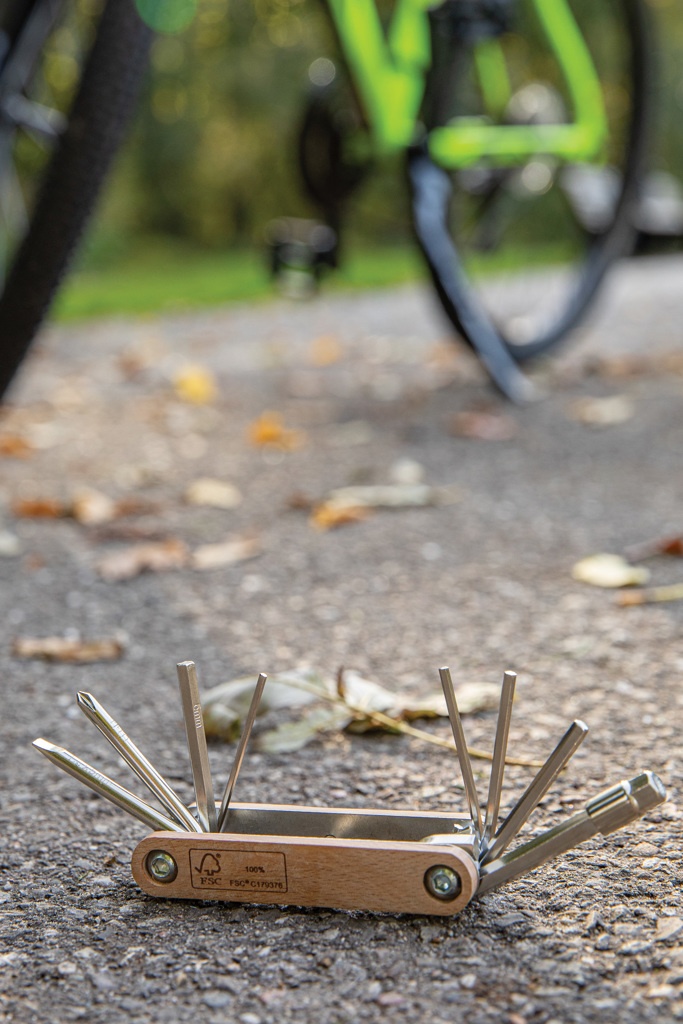 Шестигранный инструмент, изготовленный из 100% бука FSC и углеродистой стали высокой твердости и коррозионной стойкости (#45). Твердость по Роквеллу 40-45. Изделие поставляется с 9 функциями: шестигранный ключ 5,5 мм; шестигранный ключ 2 мм; шестигранный ключ 2,5 мм; шестигранный ключ 3 мм; шестигранный ключ 4 мм; шестигранный ключ 5 мм; шестигранный ключ 6 мм; отвертка Philips; плоская отвертка. Упаковано в коробку FSC mix kraft.