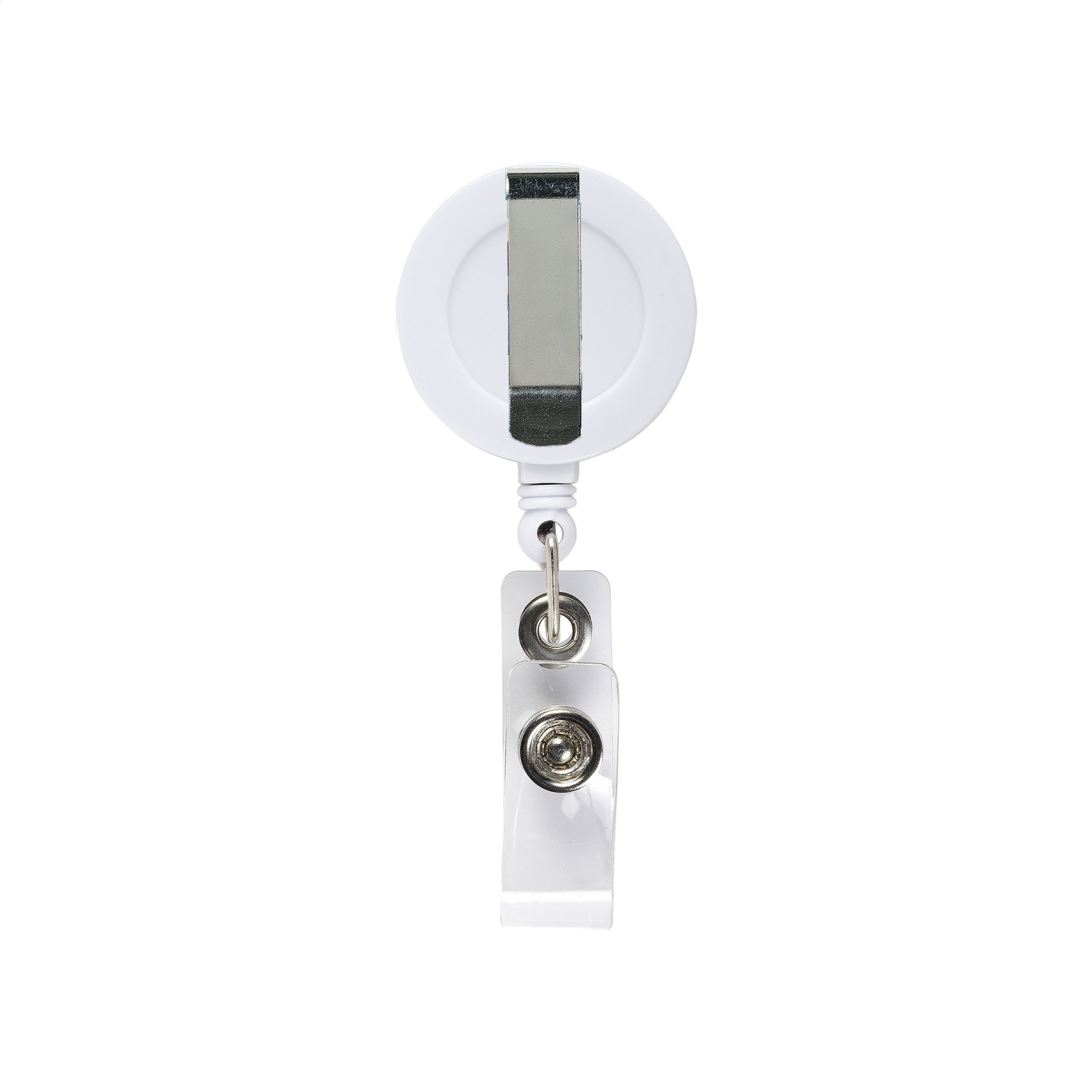 Держатель для бейджа/пропуска с металлическим зажимом для ремня, выдвижным нейлоновым шнуром и застежкой-кнопкой.
