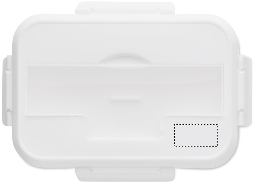 Двухуровневый пластиковый ланч-бокс с набором столовых приборов и ручкой. Общая емкость:1000 мл