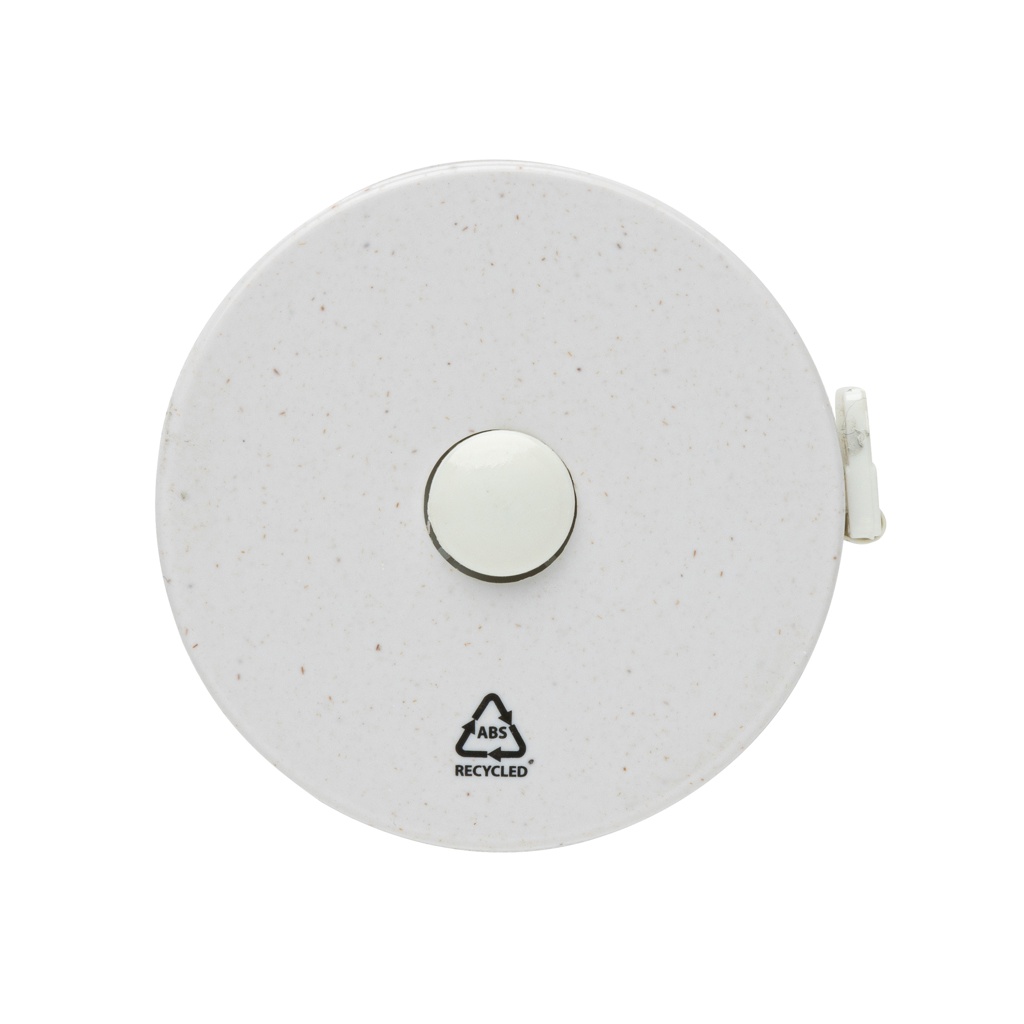 Лента из переработанного пластика длиной 1,5 м/60 дюймов с кнопкой возврата для фитнеса и моды. Корпус изготовлен из переработанного АБС-пластика, сертифицированного RCS, стекловолокна и бамбука FSC® 100%. Общее содержание переработанных материалов: 64% от общего веса изделия. Сертификация RCS гарантирует полностью сертифицированную цепочку поставок переработанных материалов. Лента имеет ширину 8 мм и вытягивается кнопкой. Упакована в упаковку FSC® mix.