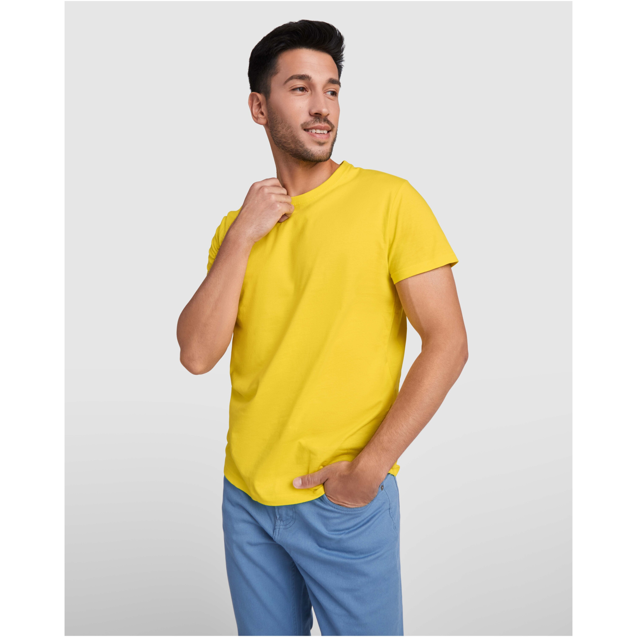 Футболка с короткими рукавами, четырехслойным круглым вырезом и усиленными закрытыми швами на воротнике и плечах. Боковые швы. Размер 4XL и 5XL доступен только в определенных цветах. Съемная этикетка.