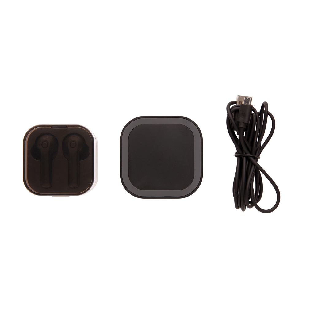 Наушники TWS в чехле для беспроводной зарядки, черный