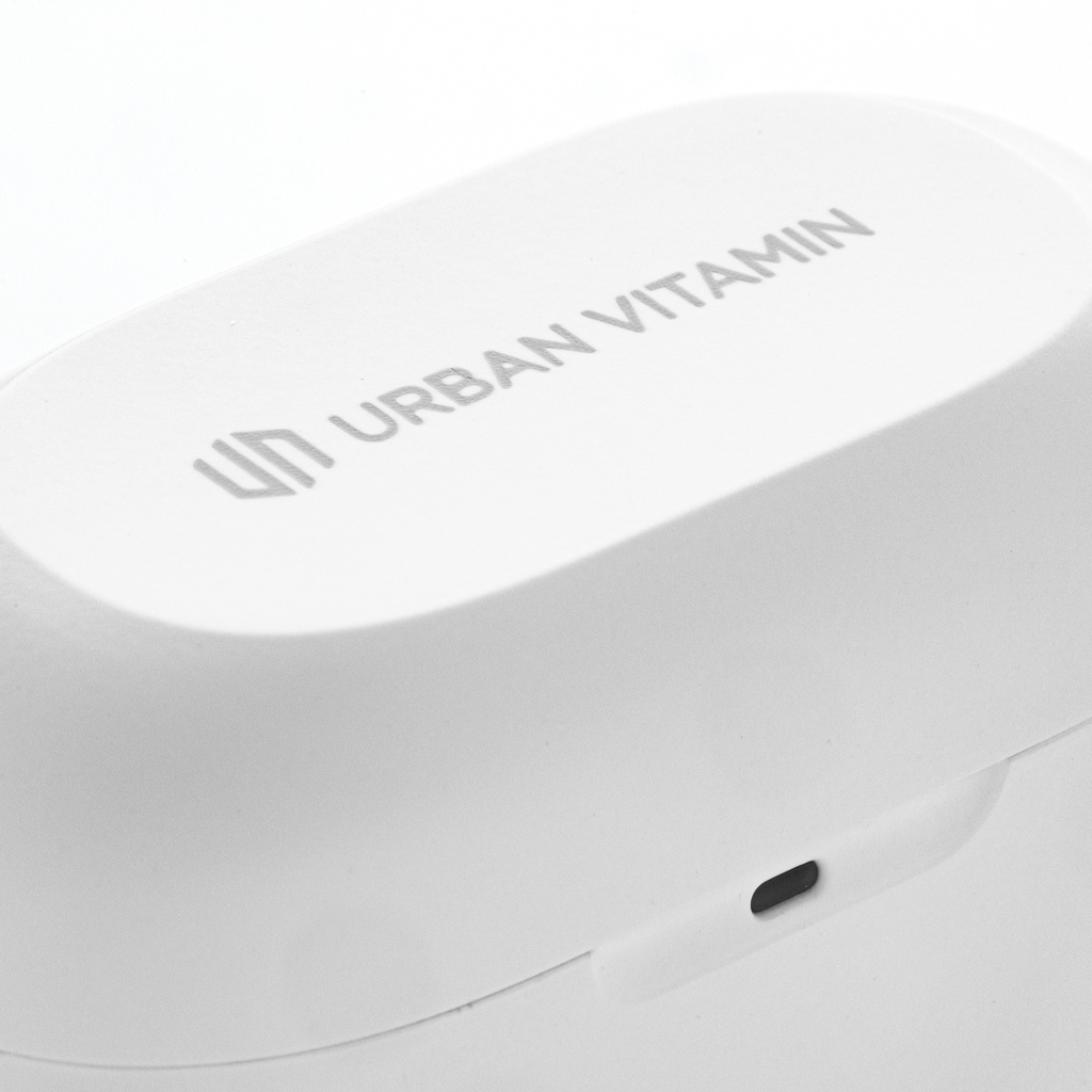Когда вы открываете кейс и вставляете наушники, вас обрушивает интенсивный бас. Как такой компактный и портативный предмет может обеспечивать такой насыщенный и глубокий звук? Наушники и портативный зарядный футляр разработаны так, чтобы их можно было носить с собой, куда бы вы ни пошли, и они легко помещаются в кармане. Удобные наушники обеспечивают до 5 часов прослушивания, а зарядный футляр обеспечивает до 20 часов воспроизведения. Достаточно, чтобы вы могли работать весь день! При получении звонка просто ответьте на него со стереозвуком благодаря 2 встроенным микрофонам. Благодаря встроенной функции сенсорного управления вам нужно всего лишь коснуться наушника, чтобы ответить с кристально чистым качеством. Рейтинг IPX 5 делает наушники устойчивыми к погодным условиям, поту и брызгам, поэтому не беспокойтесь, вынося их на улицу. Изделия Urban Vitamin изготавливаются без ПВХ и упаковываются в упаковку с уменьшенным количеством пластика.