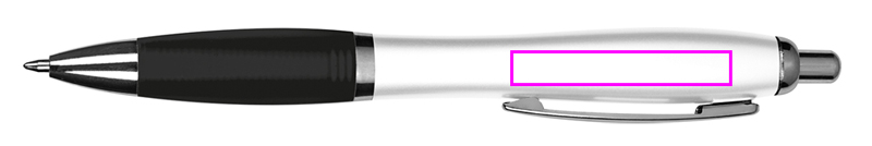 Шариковая ручка с белым корпусом, металлическим зажимом, синим стержнем большой емкости и цветной мягкой зоной захвата. Мы напечатаем ваш логотип на правой стороне зажима.