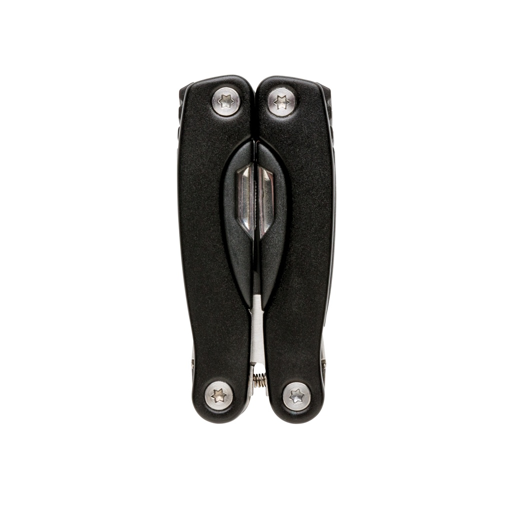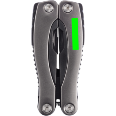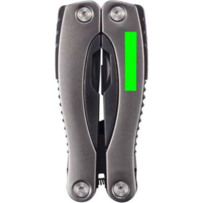 Алюминиевый мультитул, ручка с черными деталями, 14 функций, упакован в черный чехол из 600D.